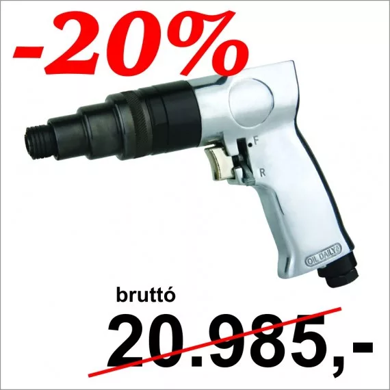Sűrített levegő meghajtású csavarbehajtó pisztolyfogantyúval. Kis átmérőjű csavarok nagy darabszámú ki- és behajtására alkalmas szerszám. Kiválóan használható fa- és lemezcsavarok esetén. Irányváltóval és kuplunggal rendelkezik. Munkalevegő elvezetés a fogantyún át.