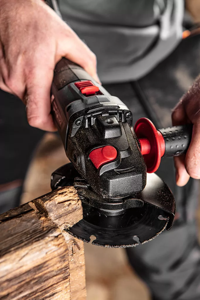 GRAPHITE akkus sarokcsiszoló, kefementes motorral, 125mm, 18V Li-ion. Graphite Energy+ akkumulátorokkal kompatibilis. 125mm-es tárcsaátmérő, 10 000 fordulat / perc, M14 orsómenet, három pozíciós oldalsó fogantyú. A sarokcsiszoló kapcsolója kétfokozatú, továbbá védi a felhasználót a tengelyreteszelés véletlen bekapcsolása ellen munka közben. A gép konstrukciója kiemelkedően ergonomikus - az elkeskenyedő fogórészt csúszásmentes műanyag borítja, ennek köszönhetően biztosan tartható a kézben. A lapos áttételháznak köszönhetően a csiszoló nehezen hozzáférhető helyeken is használható. ergonómikus markolatkialakítás tömeg 1,7 kgAkkumulátor nélküli 18 V-os kefe nélküli sarokcsiszoló, Li-Ion, 125x22,2 mm-es rotor, 10 000 fordulat / perc, M14 orsómenet, három pozíciós oldalsó fogantyú, tömeg 1,7 kg, kompatibilis az Energy + akkumulátorokkal