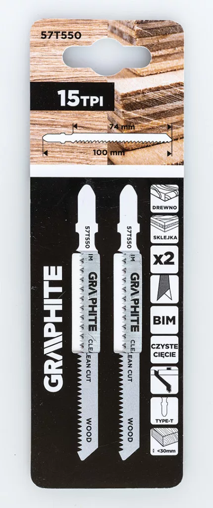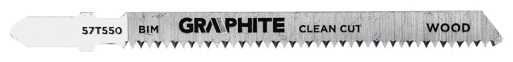 Dekopírfűrészlap, 15 TPI, bimetál, T-befogású, 2 db, tiszta vágás 57T550 a GRAPHITE-tól 15 TPI fogsűrűségű, bimetál-ből készült, T-befogásútal ellátott dekopírfűrészlap. A készlet 2 darabot tartalmaz. Teljes hossza 100 mm, munkahossza 74 mm, szélessége 8 mm, vastagsága 1,27 mm, fogazati távolsága 1,7 mm. Alkalmas keményfa, laminált lemez vagy gipszkarton vágására (<30 mm) A GRAPHITE márkájú penge tiszta vágást tesz lehetővé.