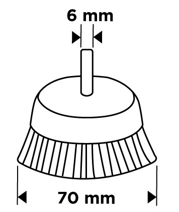 A GRAPHITE 57T416 70 mm-es, krimpelt huzalból készült, 6 mm-es szárú acél tompa kefe 57T416 krimpelt acélhuzalból készült. Maximális fordulatszáma 4500 fordulat/perc. A termék megfelel az EN 1083-2 szabvány követelményeinek, és 6 mm-es szárral rendelkezik, így bármilyen fúróval vagy csavarozógéppel használható. A GRAPHITE drótkefe sokoldalúan felhasználható termék számos feladathoz.
