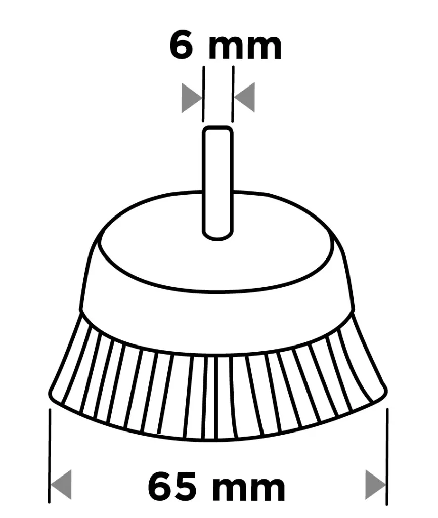 A GRAPHITE 65 mm-es nylon fenékkefe 6 mm-es szárral 57T419 nylonból készült. Maximális fordulatszáma 4500 fordulat/perc. A termék megfelel az EN 1083-2 szabvány követelményeinek, és 6 mm-es szárral rendelkezik, így bármilyen fúróval vagy csavarozógéppel használható. A GRAPHITE nejlonkefe sokoldalú termék számos famegmunkálási feladathoz.