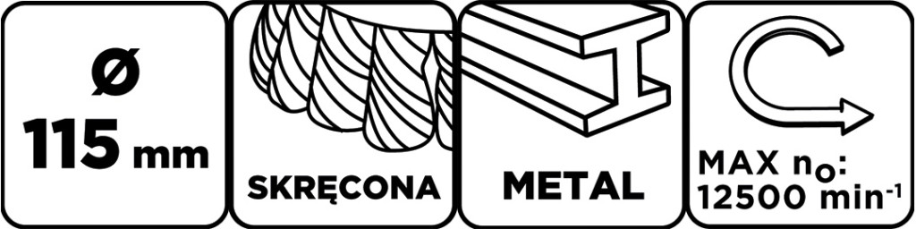 A 115 mm-es drótkerékkefe, sodrott acélhuzal, M14, 57T432 GRAPHITE 115 mm átmérőjű, sodrott acélhuzalból készült. M14-es menettel van ellátva, és sarokcsiszolókkal való használatra tervezték. A szerszám maximális fordulatszáma 12500 rpm. A termék megfelel az EN 1083-2 szabvány követelményeinek, és kiválóan alkalmas fémfelületek érdesítésére, agresszív tisztításra, rozsda, festék vagy szennyeződés eltávolítására.