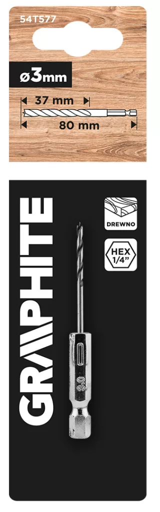 GRAPHITE Fafúró 1/4"-os hatszög szárral, 3 mm. Fa és rétegelt lemez megmunkálásához tervezték. Jellemzője a 3 mm átmérő és a 80 mm hosszúság. A feladatokhoz 2800 fordulat/perc maximális fordulatszámmal alkalmazkodik. Számos barkácsolási feladathoz jól használható.