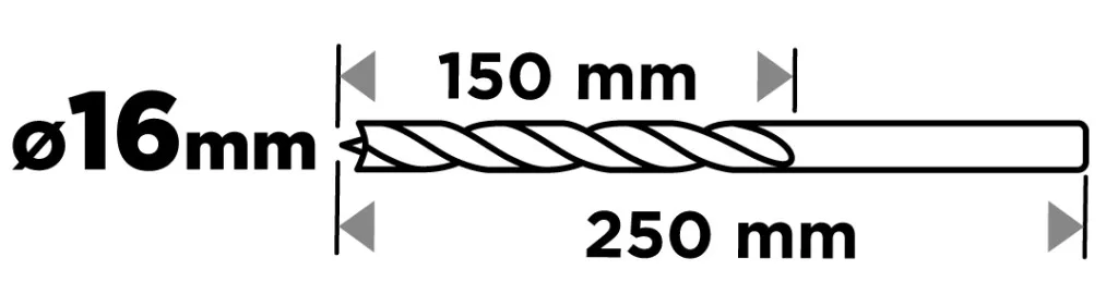 Graphite Fafúró, hosszú, 16x250mm