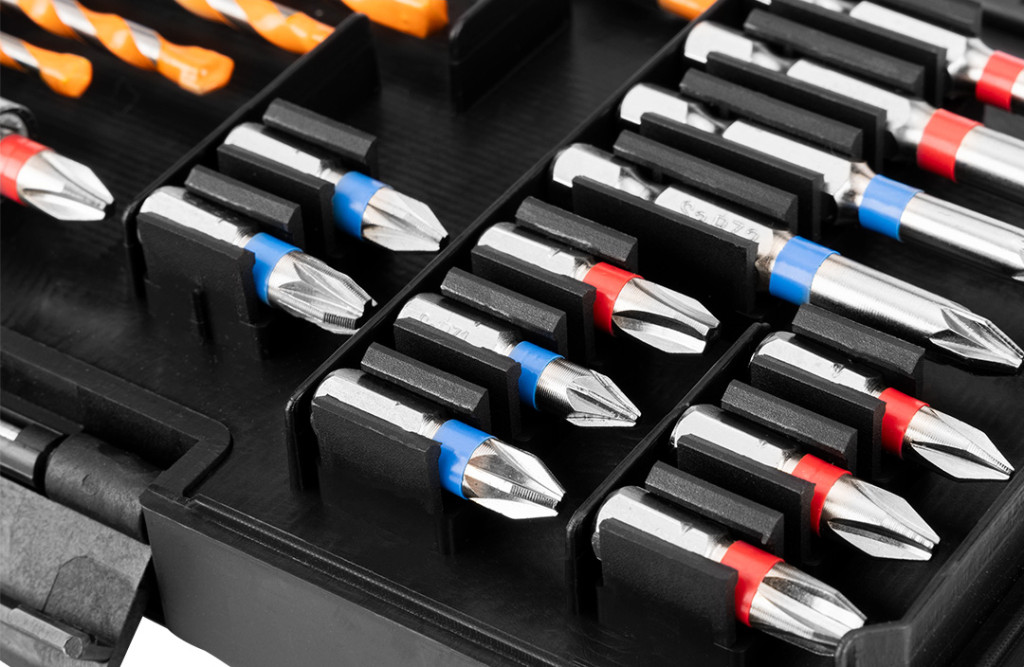 GRAPHITE 56H611 FÚRÓ-CSAVARBEHAJTÓ KÉSZLET, 20DB-OS. Egy többcélú szerszám- és tartozékkészlet, amelyet szakemberek és barkácsolók számára ajánlunk. Magas minőségű termékeket tartalmaz: 6 darab betonfúró fúrószárat: 25 mm-es fúrószerszámok: 4-5-5,5-6-7-7-8 mm; 9 db 25 mm: Ph1,2x Ph2, 2 x Ph3 ,PZ1, 2xPZ2, PZ3; 4 db 50 mm : Ph1, Ph2, PZ1, PZ2 és egy bit tartó. Az alkatrészek robusztus s2 acélból készültek, ami garantálja a hosszú évekig tartó használatot.