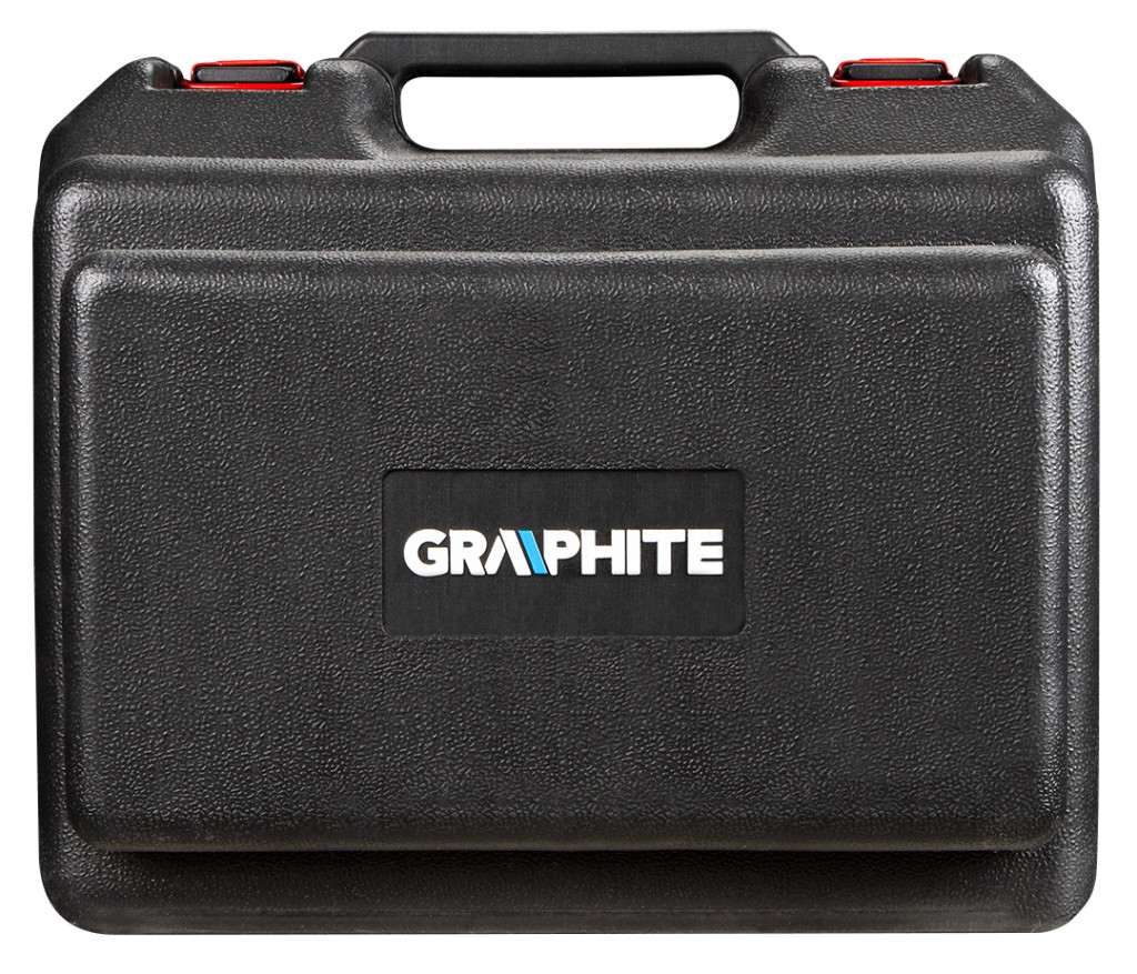 GRAPHITE körfűrész (kat. sz. 58G488) 1 200 W-os motor, 5 000/perc fordulatszám. A fűrész alkalmas 0°-45° tartományban ferdevágásra is. A vágandó anyag maximális vastagsága egyenes vágásnál max. 65 mm, ferdevágásnál 43 mm. A vágási szög és a vágási mélység szerszám használata nélkül beállítható – a vágási paraméterek beállítását külön skálák könnyítik meg. A körfűrész markolata véletlen bekapcsolás elleni reteszeléssel van ellátva, és csúszásgátló műanyaggal van bevonva a munka kényelmének növelése céljából. A fűrészgépben 185 mm külső átmérőjű, 20 mm átmérőjű rögzítőfurattal ellátott fűrésztárcsa használható. A fűrésztárcsa gyors cseréjét szolgálja az orsózár acél nyomógombja. A fűrésztárcsa alsó és felső védőborítása is alumínium ötvözetből készült. Szükség esetén az elhasználódott szénkefék saját kezűleg is kicserélhetők. A fűrészgéphez fűrésztárcsa és hordtáska is tartozik. A CE tanúsítvány bizonyítja az európai szabványoknak való megfelelést.Körfűrész 1 200 W, fűrésztárcsa 185 x 20 mm, fordulatszám 5 000 perc-1, ferdevágás 0º-45º, vágásmélység 65/43 mm (90º/45º), tömeg 3,8 kg, tartozékok: párhuzamvezető, tartalék vágótárcsa, állítható vágásszög és vágásmélység, hordtáska