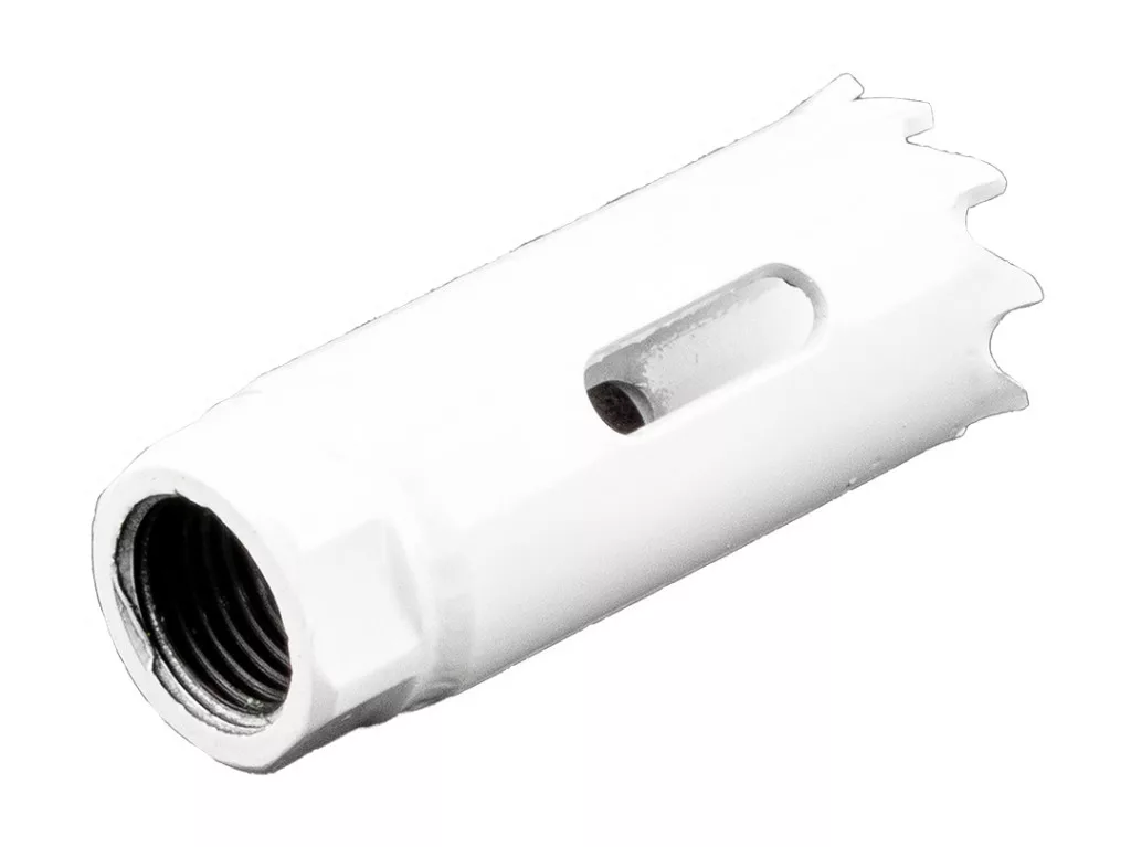 A GRAPHITE 56T703 20 mm-es bimetál lyukfűrésze 51 mm magassággal 38 mm mélységig fúrható. HSS nagysebességű acélból készül, és 1/2'' x 20 UNF menettel van ellátva. Fémben, rozsdamentes acélban (Inox), öntöttvasban, sárgarézben, alumíniumban és fában történő munkához tervezték. A GRAPHITE lyukfűrészt a 14-30 mm-es tartományban lévő bimetál lyukfűrészekhez ajánlott a 56T753 adapterrel és a kísérleti fúrószárral együtt használni. A szerszám maximális fordulatszáma az anyagtól függően változik: acél - 445 fordulat/perc, Inox acél - 220 fordulat/perc, alumínium - 660 fordulat/perc, fa - 520 fordulat/perc, öntöttvas - 290 fordulat/perc, sárgaréz - 580 fordulat/perc. A bimetál lyukfűrészt fúrógép vagy csavarozógép segítségével történő használatra tervezték.
