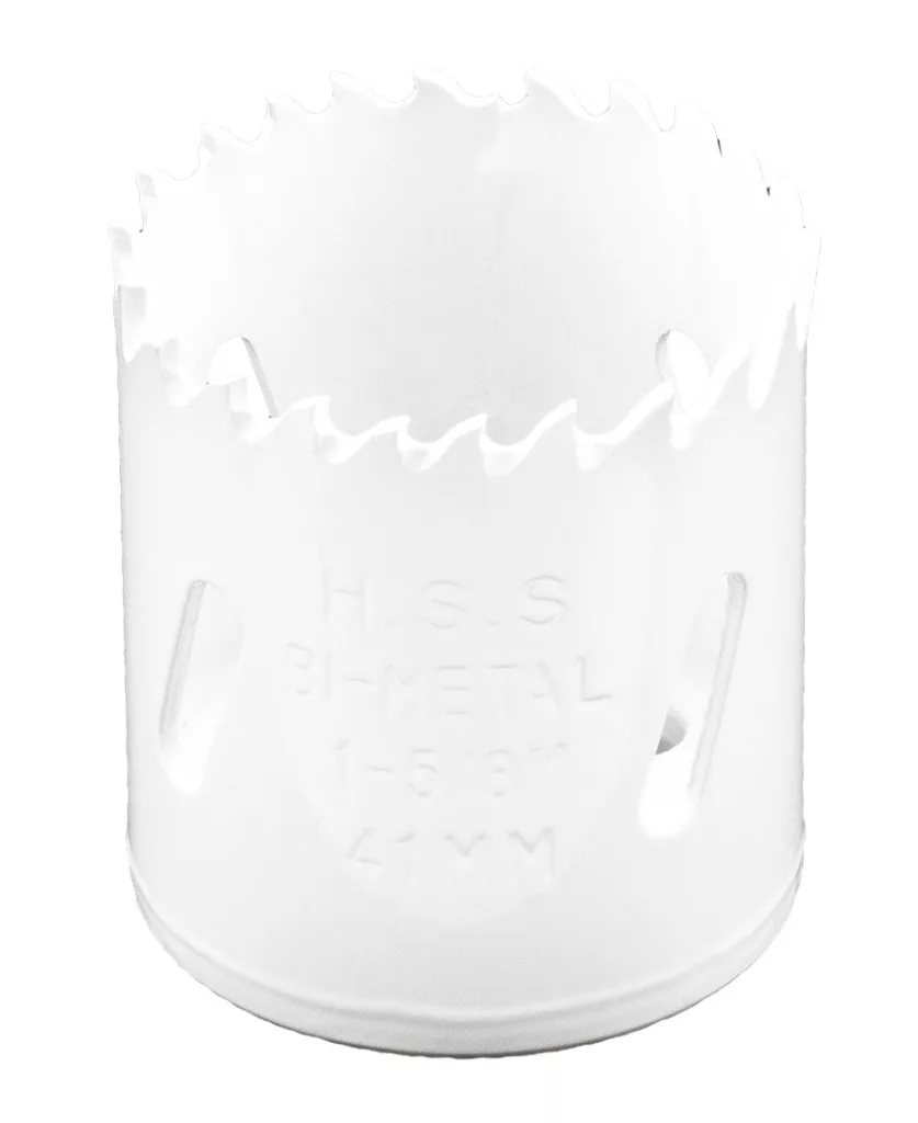 A GRAPHITE 56T710 41 mm-es bimetál lyukfűrésze 44 mm magas, és 38 mm mélységig fúrható. HSS nagysebességű acélból készül, és 5/8'' x 18 UNF menettel van ellátva. Fém, rozsdamentes acél (Inox), öntöttvas, sárgaréz, alumínium és fa megmunkálására tervezték. A GRAPHITE lyukfűrészt a 32-152 mm-es tartományban lévő bimetál lyukfűrészekhez ajánlott az 56T754 adapterrel és a kísérleti fúrószárral együtt használni. A szerszám maximális fordulatszáma az anyagtól függően változik: acél - 210 fordulat/perc, Inox acél - 105 fordulat/perc, alumínium - 315 fordulat/perc, fa - 230 fordulat/perc, öntöttvas - 140 fordulat/perc, sárgaréz - 280 fordulat/perc. A bimetál lyukfűrészt fúrógép vagy csavarozógép segítségével történő használatra tervezték.