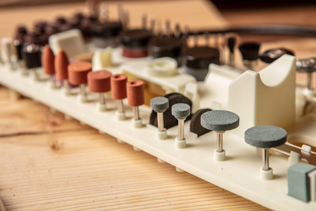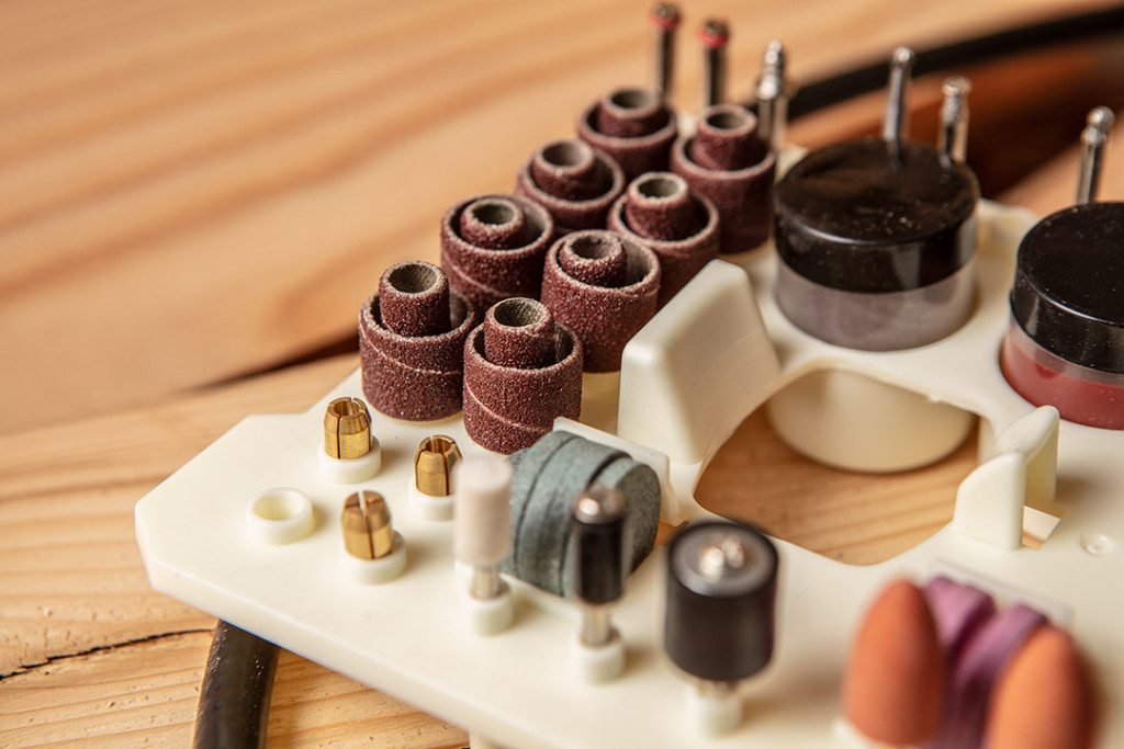 GRAPHITE mini fúró és csiszológép,170 W . Egy funkcionális, kézreálló, széles körben felhasználható szerszám. Lehet vele vágni, csiszolni, polírozni és fúrni különböző anyagú munkadarabokban. Könnyű, a sérüléseknek ellenálló házzal és erős, 170 W-os motorral van felszerelve, ami a legtöbb műhelymunkához elegendő. A minifúrógép fordulatszáma fokozatmentesen szabályozható 8 000 – 35 000 perc⁻¹ tartományban. Esztétikus, műanyag és polikarbonát anyagú hordtáska tartozik hozzá. A minifúrógéphez gazdag tartozékkészlet mellékelt: csiszolókövek, gyémánt marófejek, fúrószárak, fenőkő, polírozó filcek, csiszoló fejek és szalagok, vágótárcsák, összesen mintegy 190 elem. Tartozik még hozzá a munkát megkönnyítő pótmarkolat és flexibilis tengely a precíz munkákhoz.Mini csiszológép 170 W, fordulatszám 8000-35000 1/perc, befogási átmérő (szerszámszár-vég átmérő) 1,6 mm/2,4 mm/3,2 mm, orsó átmérő M8, max. betétszerszám átmérő 35 mm, tartozékok: flexibilis tengely, különleges villáskulcs, kiegészítő borítás, segédmarkolat, különféle tartozékok 190 db, tömeg 0,75 kg, műanyag szállítódoboz