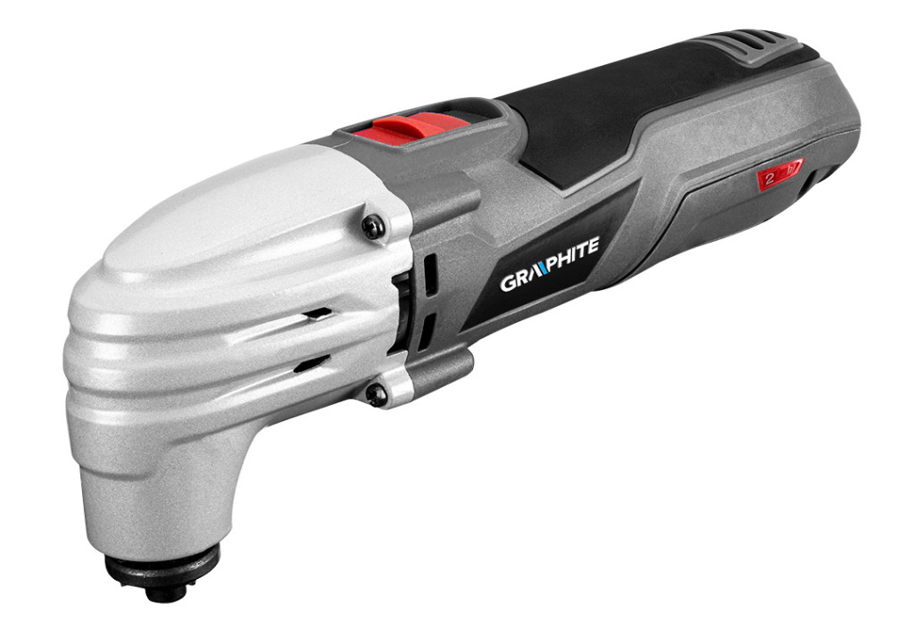 GRAPHITE Multifunkciós gép 250 W, rezgésszám 15000-21000 perc. A rezgésszög 3,2°. A mellékelt adapter lehetővé teszi a forgácselszívást, a hat tartozék pedig lehetővé teszi, hogy a szerszám csiszoljon, vágjon és véssen, fémet, fát és kerámiát. A készülékhez tartozik egy csiszolótalp, kerámia penge, kaparó, félköríves penge fához és műanyaghoz, széles merülő penge és keskeny merülő penge. A készlet tartalmaz továbbá csiszolópapírt (5 db), fedőlapokat, egy hordtáskát. A szerszám lehetővé teszi az egykezes munkát, könnyű súlya és kézreálló mérete (300 x 70 mm) pedig hozzájárul a kényelmes munkavégzéshez.
