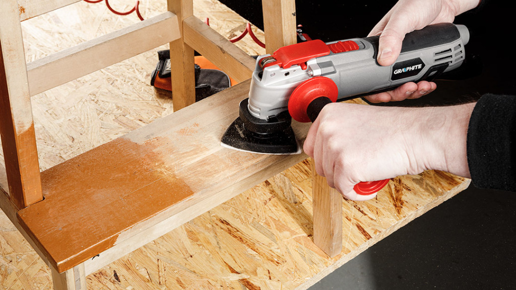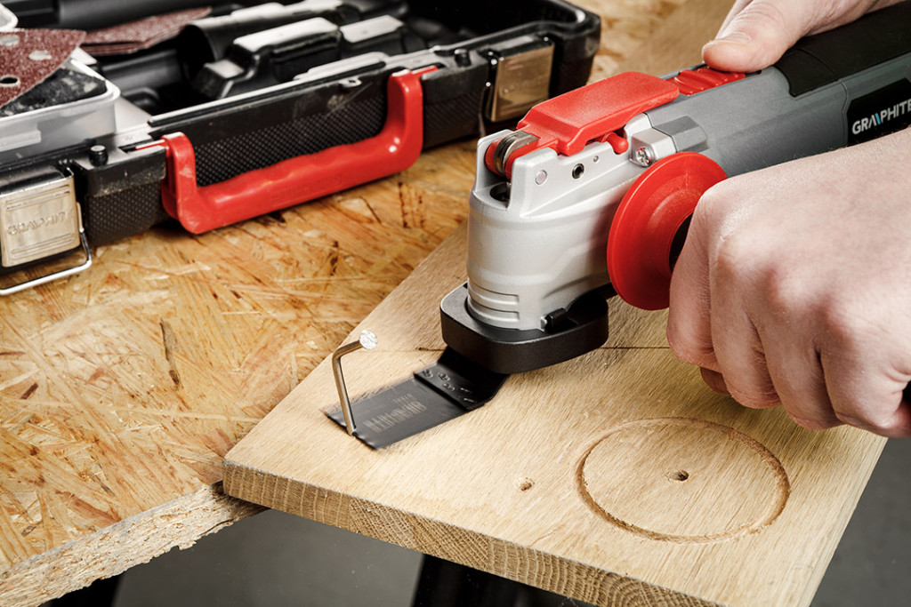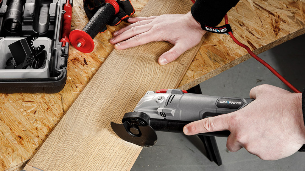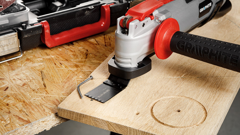 GRAPHITE Multifunkciós gép 500 W, rezgésszám 8000-16000 perc. A rezgésszög 5°. A mellékelt adapter lehetővé teszi a forgácselszívást, és a többféle tartozék lehetővé teszi a szerszámmal a fém, fa és kerámia csiszolását, vágását és vésését. A szerszám tépőzáras talpat, kaparót, HCS félköríves pengét fához, HM keményfém bevonatú félköríves pengét kerámiához, HCS 20 mm-es keskeny fapengét és HSS 34 mm-es keskeny fémpengét tartalmaz. A készlet P80-as csiszolópapírt (5 db), egy hordtáskát és egy kiegészítő fogantyút is tartalmaz. A szerszám lehetővé teszi az egykezes munkát, könnyű súlya (1,45 kg) és kézreálló mérete (300 x 70 mm) pedig hozzájárul a kényelmes munkavégzéshez. A szerszám mágnessel ellátott szerszámnyéllel rendelkezik, és kulcs nélküli szerszámcsere rendszerrel rendelkezik. Szakemberek és barkácsolók számára készült.