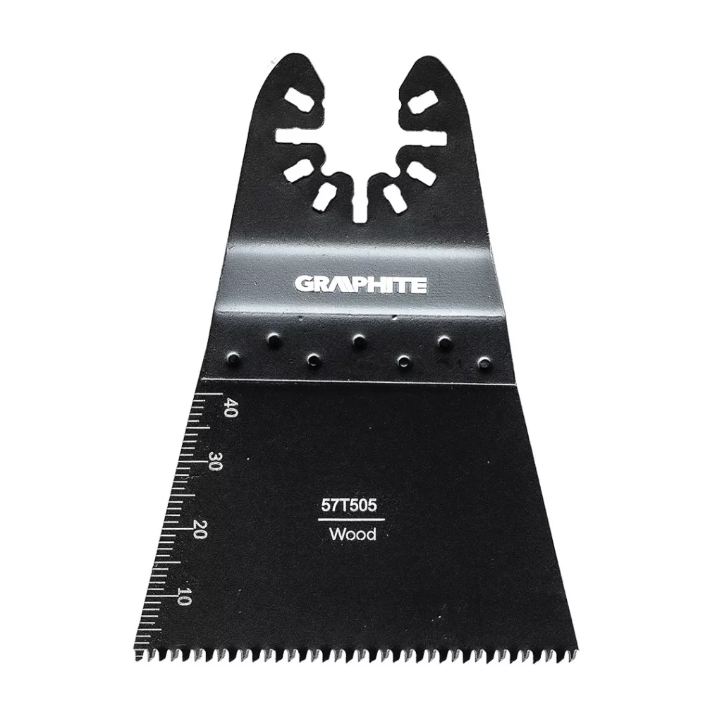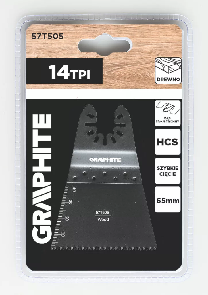 A GRAPHITE 14 TPI, HCS, 65 mm-es 57T505 merülővágó penge a multifunkciós géphez egy kemény szénacélból (HCS) készült szerszám, 65 mm munkaszélességgel és 14 TPI-vel. A pengét fába történő merülővágáshoz tervezték. A három oldalról élezett fogak használata és azok 1,75 mm-es távolsága - gyors és pontos vágást tesz lehetővé. A maximális vágási mélység 40 mm, a penge vastagsága pedig 0,7 mm. A GRAPHITE márka multifunkciós fűrészlapja a választás a hatékony fakivágáshoz az összeszerelési és felújítási munkák során.