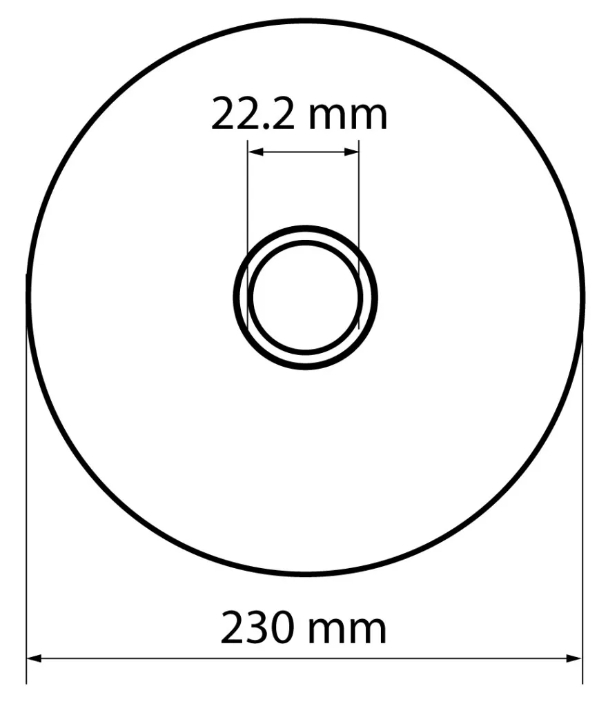 Vágótárcsa, korund fémekhez 230 x 2 x 22,2 mm, 41 A46-S-BF, 57T112 a GRAPHITE által fémek vágására tervezett alumínium-oxid korong. Méretei 230 x 2 x 22,2 mm. Ez a modell vékony kialakítású és a 41 A46-S-BF jelöléssel rendelkezik. A tárcsa vastagsága 2 mm, a rögzítőfurat átmérője pedig 22,2 mm. A maximális fordulatszám 6600 rpm, ami 80 m/s sebességnek felel meg. A termék megfelel az EN 12413 szabványnak.