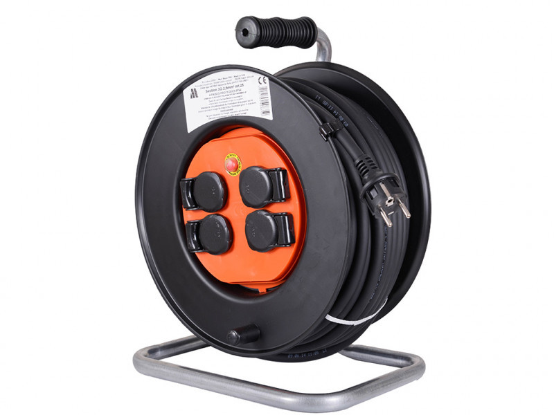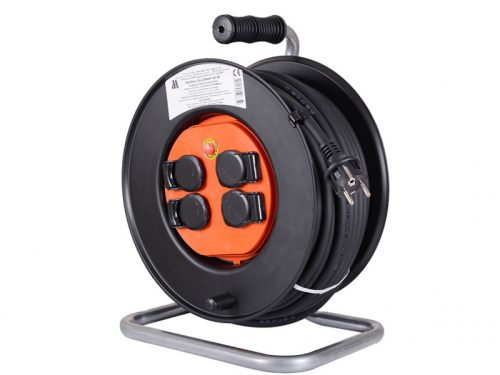 Kábeldobok 4 db földelt aljzattal, termikus védelemmel. Kábeleresztmetszet: 3x2,5 mm2 Hoszz: 25m Kábel típusa: H07RN-F Gumi Csatlakozó aljzat típusa: 2P T T 18A 250V~ Max. terhelés feltekerve-kitekerve: 2000W-3000W Védelmi osztály: IP54
