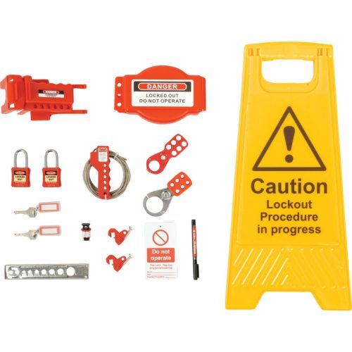 Az előre válogatott készleteket a leggyakoribb ipari felhasználásokra tervezték Praktikus tokban vagy hordtáskában kaphatók és kényelmes választást kínálnak minden olyan felhasználó részére akinek le kell zárnia a munkaterületet MTL-950-9240K - LOK116 kizárókészlet A 14 db-os készlet tartalma 1 db 300 mm-es kizárótáska 1 db kis golyósszelepes kizáró 1 db többcélú kizárókábel 1 db 25 mm-es PVC bevonatos pánt 1 db 38 mm-es PVC bevonatos pánt 2 db piros biztonsági kizárólakat KD 1 csomag 10 db Do Not Operate üzemen kívül címke 1 db ultravékony jelölőtoll 1 db Caution Lockout in operation Figyelem Terület lezárva A-alakú tábla 1 db állítható szelepkerekes kizáró 1 db csapos megszakító szabványos külső csatlakozással 1 db univerzális megszakítós kizáró 1 db pneumatikus kizáró