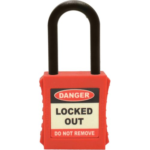 Kis méretű lakat erősített nejlonkengyellel mely nem vezeti az áramot Ideális egy extra biztonsági szint nyújtására veszélyes környezetben végzett munka esetén Szín piros