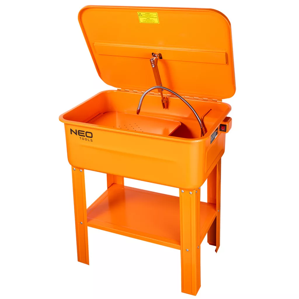 NEO 10-813 Alkatrészmosó 45L, 26W/230V szivattyúval. Acélból készült, porszórt bevonattal. A készülék 230 V / 50 Hz-es tápfeszültséggel működik. A szivattyú teljesítménye 2,7-3,3 liter percenként, a hajlékony tömlő hossza 615 mm. A készülékben a mosófolyadék zárt rendszerben kering. Alkatrészek, szerszámok mosására szolgál. A hatékony NEO TOOLS gép a mindennapi használat során is bizonyítani fog.