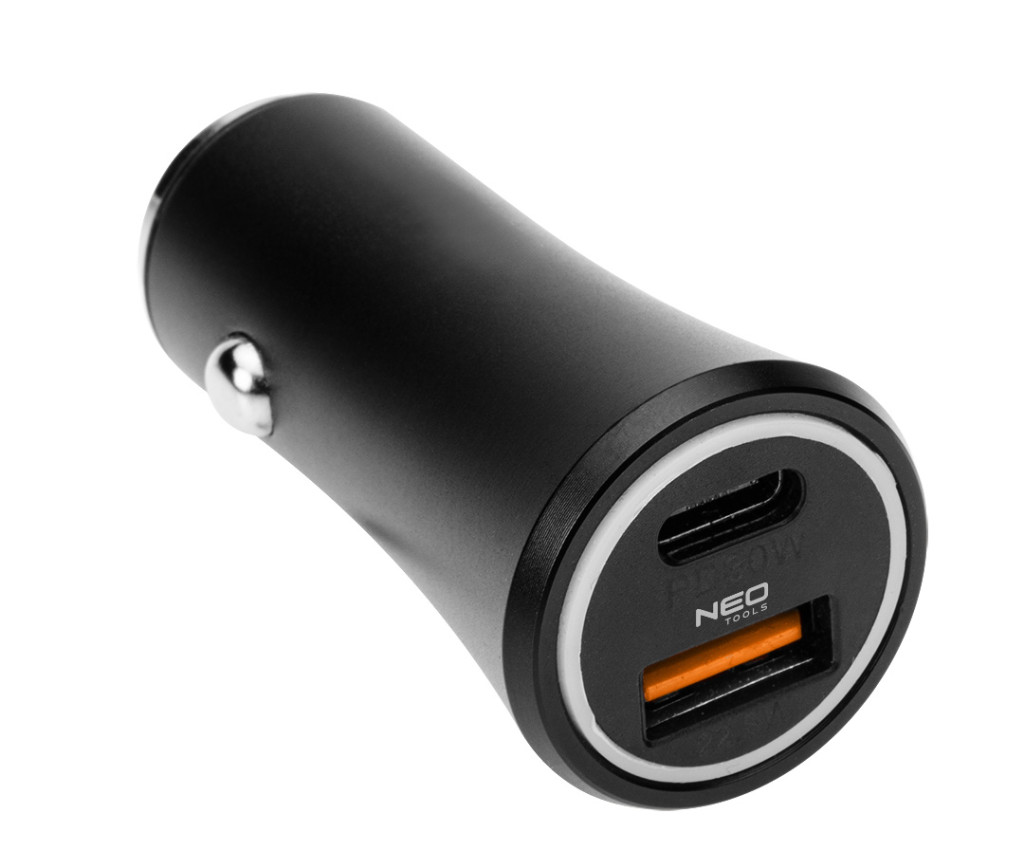 Neo Tools Autós USB adapter,12-24V, USB-A, USB-C csatlakozókkal