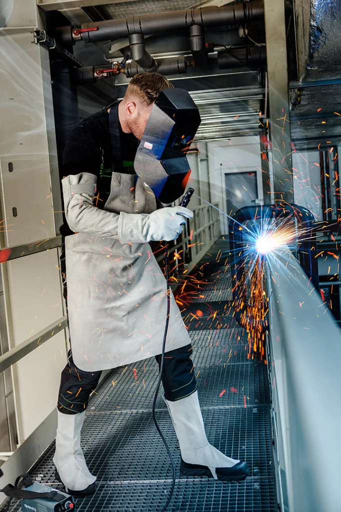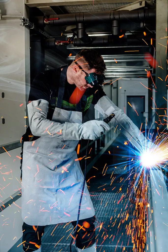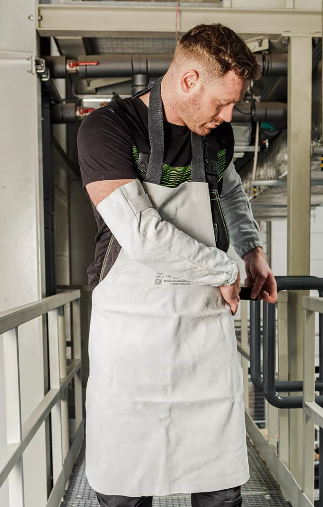 A NEO 60 x 90 cm-es bőr hegesztőkötény, pamut pántokkal, 1,2-1,4 mm vastag marhabőrből készült. 75 cm hosszú hevederes nyakpánttal és 55-100 cm hosszúságú, tépőzárral állítható pamut ágyékpánttal rendelkezik. Mindkét heveder erős kevlárszállal van rögzítve. A 60 x 90 cm-es kötény a II. védelmi kategóriába tartozik. Az EN ISO 11611:2015 szabványnak megfelelően tanúsított és CE tanúsítvánnyal rendelkezik. Ez egy rendkívül tartós és robusztus NEO márkájú munkaruha hegesztési feladatokhoz.