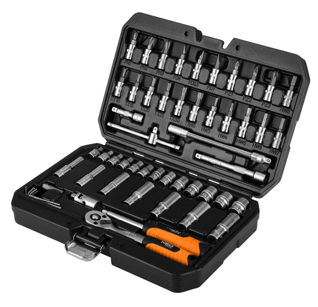 Neo Tools Dugókulcs és bit készlet, 1/4", matt felület, 55db