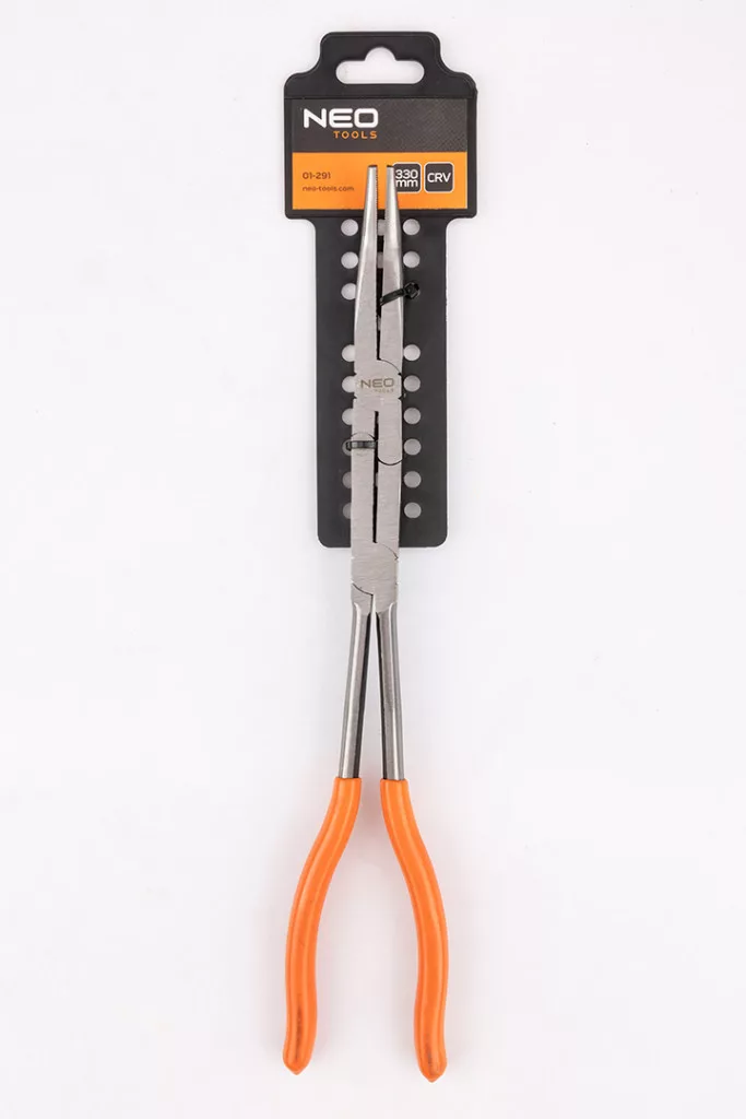 NEO 01-292 dupla csuklós egyenes fogó 330mm. CrV acélból készül, és két csukló jellemzi, amelyek lehetővé teszik a nagy fogóerő kifejtését és a nyitási szög növelését korlátozott munkatartományban végzett munkáknál is. A fogantyúk PVC bevonattal vannak ellátva. A NEO TOOLS fogó kialakítása és a kettős csuklórendszer lehetővé teszi a nehezen hozzáférhető helyek elérését. A szerszám számos helyzetben, professzionális és barkács munkáknál is, hasznosnak bizonyul.
