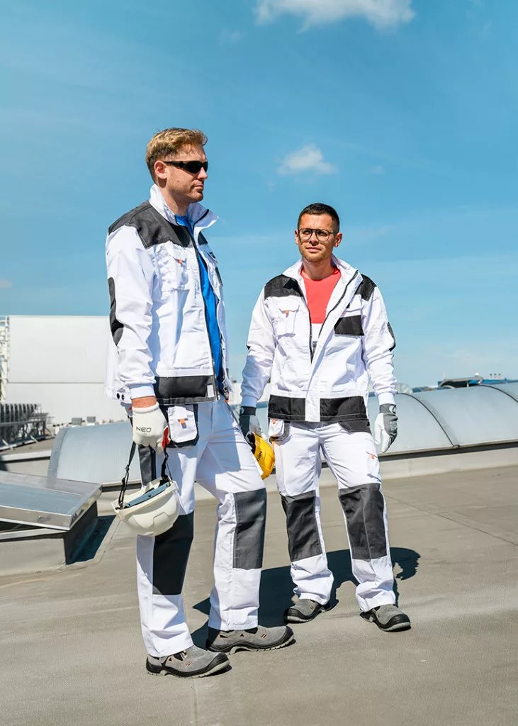A NEO fehér munkadzseki nagyon praktikus megoldás minden típúsú munkához, úgy a szakemberek, mint a barkácsolók részére. Kiváló minőségű anyagokból készül, a könyököknél megerősített technológiával, hogy a mechanikai surlódásoknak ellenállóbb legyen. A dupla varrások növelik tartósságot, a fényvisszaverő elemek biztosítják viselője láthatóságát. A szolid zsebek nagy terhelést is kibírnak, elférnek benne a munka közben szükséges szerszámok. Jelentős előnye a jól elhelyezett okostelefon zseb, így a telefon mindig kéz alatt lehet, és nem kell biztonságát félteni. A termék EN ISO 13688:2013 szabvány szerinti kivitelezése és az európai tanúsítványa minőségének garanciája. A NEO márka a professzionális igényeket is kielégíti.