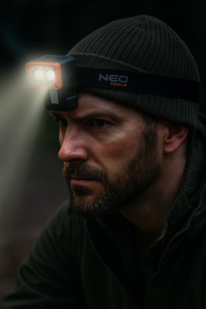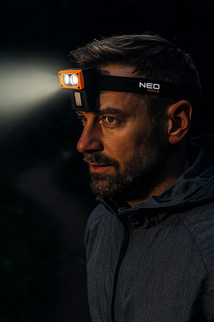 Neo Tools Fejlámpa, akkus, talppal, fejpánttal, tokkal, 500lm