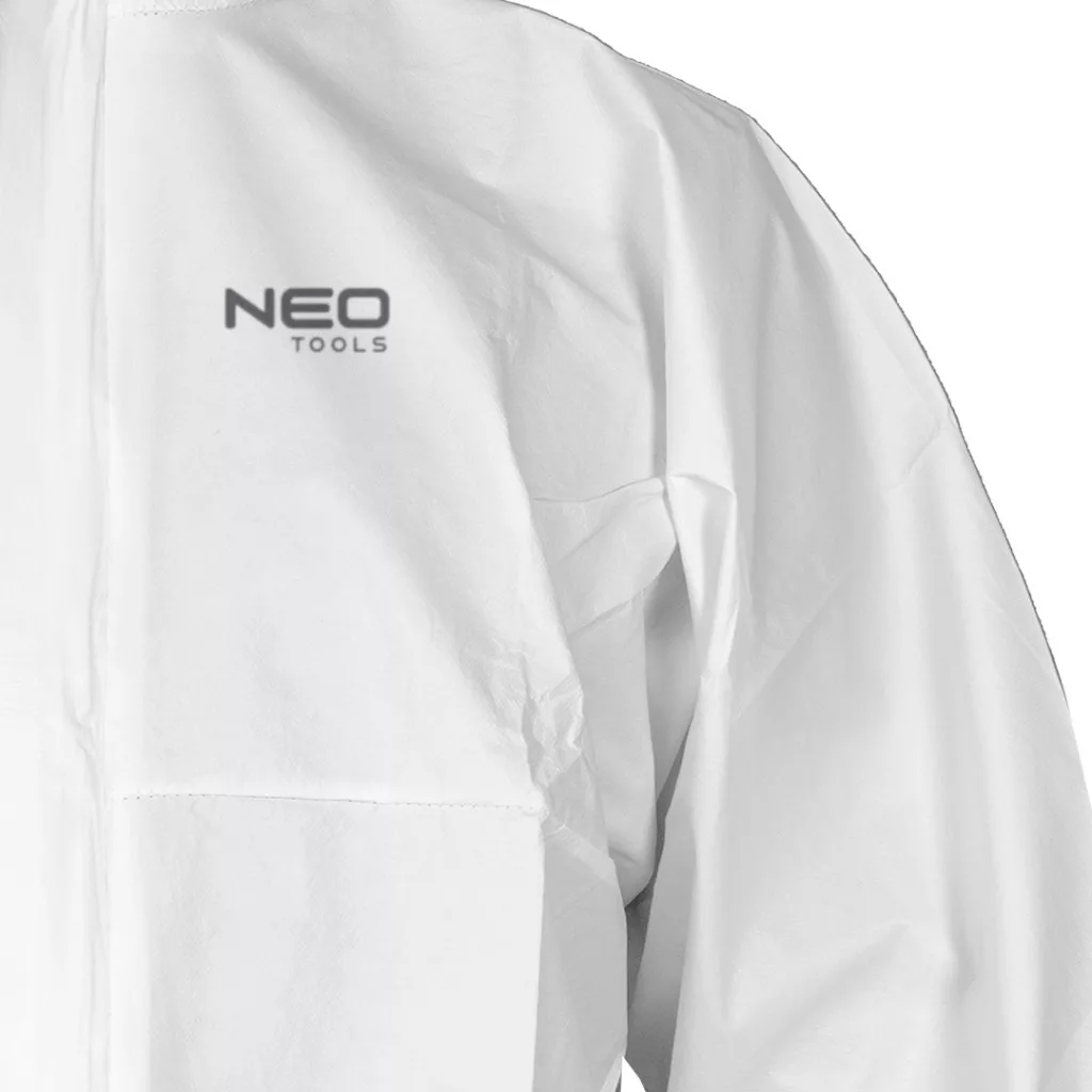 A NEO festőruha PP+PE egy eldobható védőoverall, amely kívülről polietilénnel bevont polipropilénből készült, mikroporózus szerkezetű, 65 g/m2. mikroporózus szerkezettel.Gumirozott kapucnival rendelkezik további gumirozások vannak a derék, az ujjak és a lábszárak alján, hogy még jobban védjen a szennyeződések ellen. Cipzárral záródik, amelyet ráadásul egy ragasztós zárólap borít. Védelmi besorolások: EN 1073-2:2002 szabvány szerinti 2. osztályú szennyeződés elleni védelemmel- EN 1149-5:2018 szabvány szerinti elektrosztatikus tulajdonságokkal- EN 13034:2005+A1:2009 szabvány szerinti BP [6] típusú (folyékony vegyi anyagok), 5. típusú (szilárd részecskék) vegyi anyagokkal szembeni védelemmel-EN 14126:2003+AC:2004 szabvány szerinti 5-B típusú biológiai anyagokkal szembeni védelemmel rendelkezik. A védőoverál elején nyomtatott logóval és bevarrt papírmérettel rendelkezik. A NEO márkájú terméket több méretben kínálják.