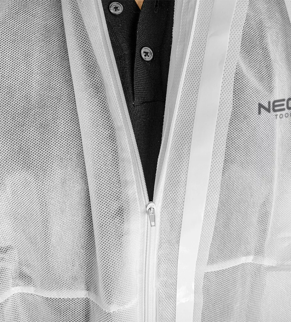 A NEO festőruha . Egy eldobható ruházati kiegészítő amely polipropilénből készült, 50 g/m2 tömegű. Gumirozott kapucnival rendelkezik további gumirozások vannak a derék, az ujjak és a lábszárak alján, hogy még jobban védjen a szennyeződések ellen. Cipzárral záródik, amelyet ráadásul egy ragasztós zárólap borít. Az festőruha elején nyomtatott logóval és bevarrt papírmérettel rendelkezik. A NEO márkájú terméket több méretben kínálják.
