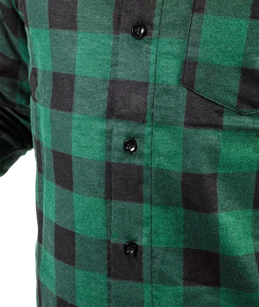 A NEO Flanel munkaing, zöld-fekete színű, mintázata kockás. Anyagát tekintve kiváló minőségű 100% pamutból készült és 170 g/m2 súlyú. Párnázott gallérral és gombos mandzsettával rendelkezik. Mellkasán praktikus zseb található. Az ing CE tanúsítvánnyal rendelkezik.