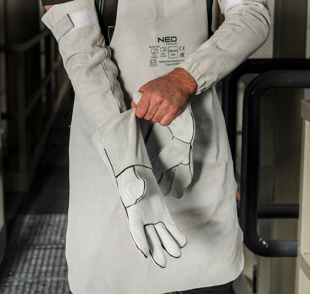 Ez a NEO kesztyű kifejezetten hegesztési munkákhoz készült, a tartós marhabőr és a kevlárszál megerősítés pedig extra védelmet nyújt. Az EN 388 és EN 407 szabványok szerinti minősítések további garanciát nyújtanak a termék minőségére és a biztonságos használatra. A termék jellemzői: Anyag: Tartós marhabőr kevlárszállal megerősítve, Megfelelőség: CE tanúsítvány, EN 388: 4332X és EN 407: 442X4X, Méret: 10 (10-es méretben kapható), Kialakítás: Hosszabb kialakítású, így nagyobb területen védi a kezet, Hegesztési munkákhoz készült MAG-módszerrel, Megfelel az EN 21420:2020 és EN 12477 szabványoknak, Védelmi kategória: II. kategória