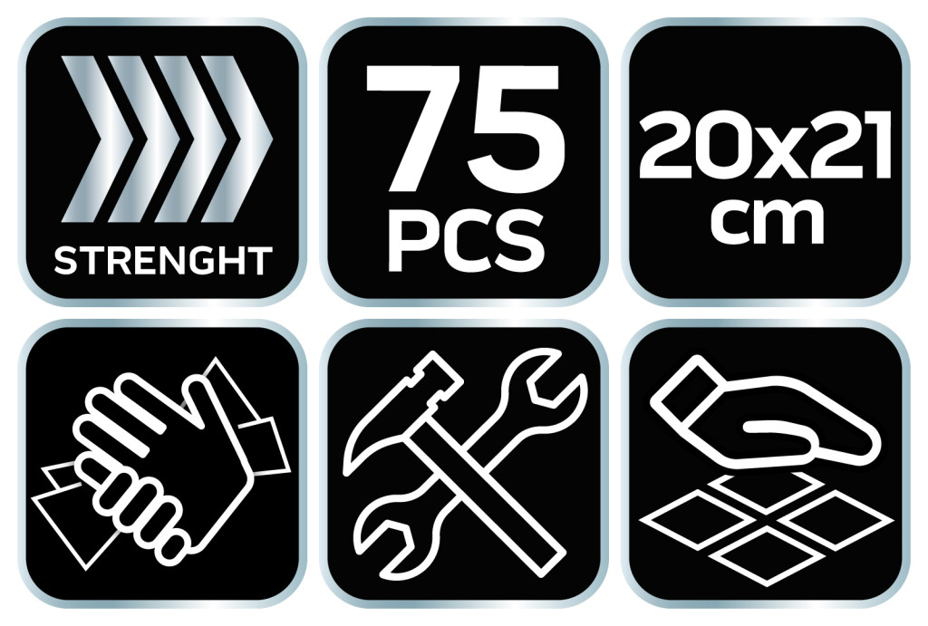 Neo kéztisztító kendő. Kézmosásra, valamint a felületek és szerszámok tisztítására szolgáló törlőkendők, 75 db-os kiszerelés. Eltávolítja a nehéz szennyeződéseket a kezekről, szerszámokról és más felületekről. Az építőiparban, autóiparban, nyomdaiparban dolgozó szakemberek számára készült. Az eldobható törlőkendők segítenek megszabadulni a speciális ragasztók, gyanták, szilikonok, lakkok, festékek, poliuretánhabok és polimerek által hagyott foltoktól. A törlőkendők természetes csiszolóanyagot, szilícium-dioxidot tartalmaznak. Természetes pH-értékkel rendelkeznek a bőr számára. A doboz 100 db törlőkendőt tartalmaz.