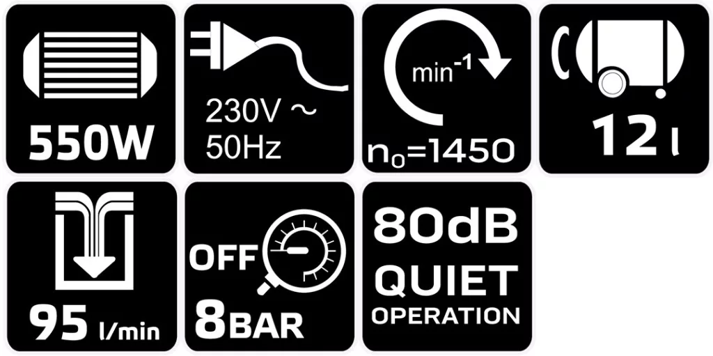 Neo Tools Kompresszor, 12L, olajmentes, extra csendes, kefementes motorral, 95L/perc, 8bar