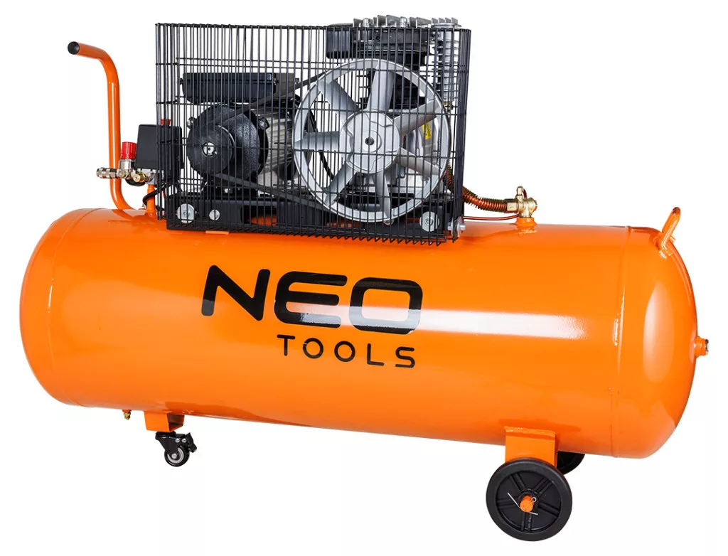 Neo Tools Kompresszor 150L, 10bar, 330L/perc, 2 csatlakozó, 2 nyomásmérő, olajkenésű