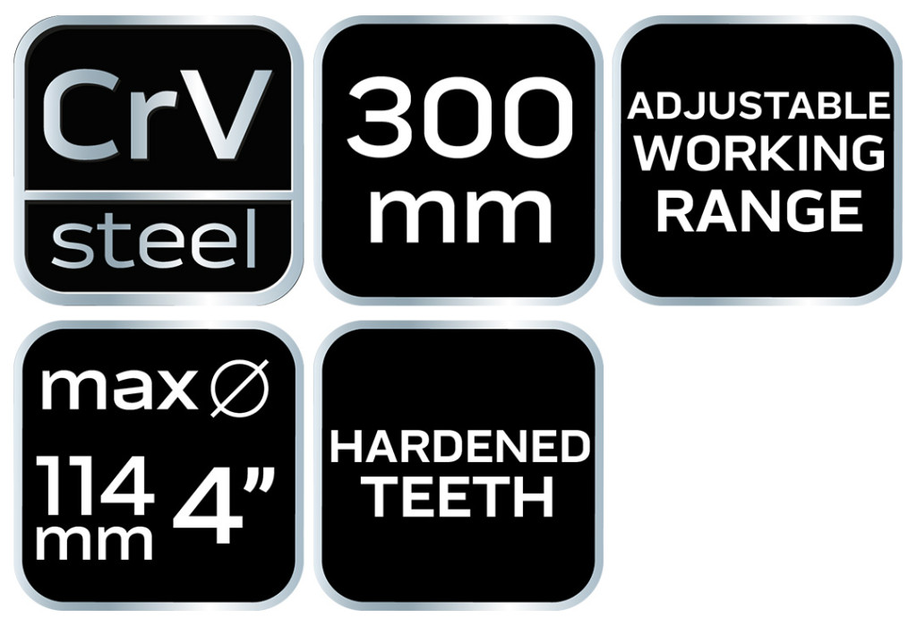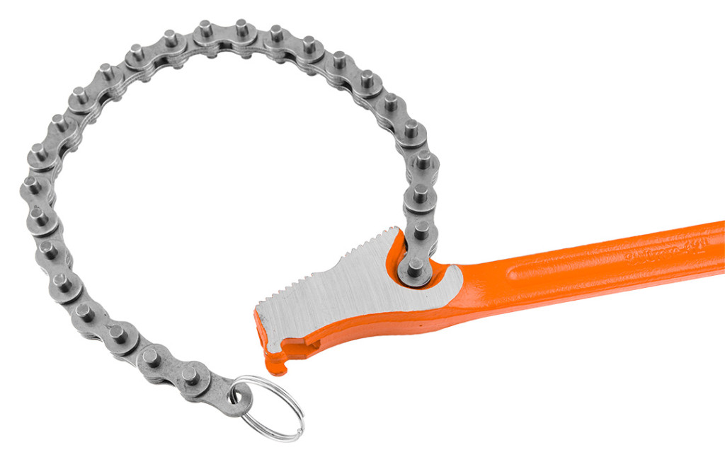 NEO láncos csőfogó, 300mm, 115 mm-es fogástartománnyal. A munkát minden körülmények között lehetővé tevő lánc kiváló minőségű, a terméknek hosszú élettartamot biztosító króm-vanádium acélból készült. A NEO márka a professzionális igényeket is kielégíti.