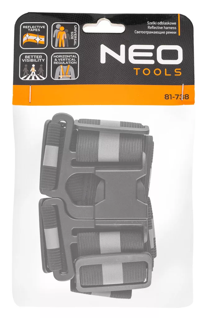 Neo Tools Láthatósági heveder, fényvisszaverő sávval, fekete