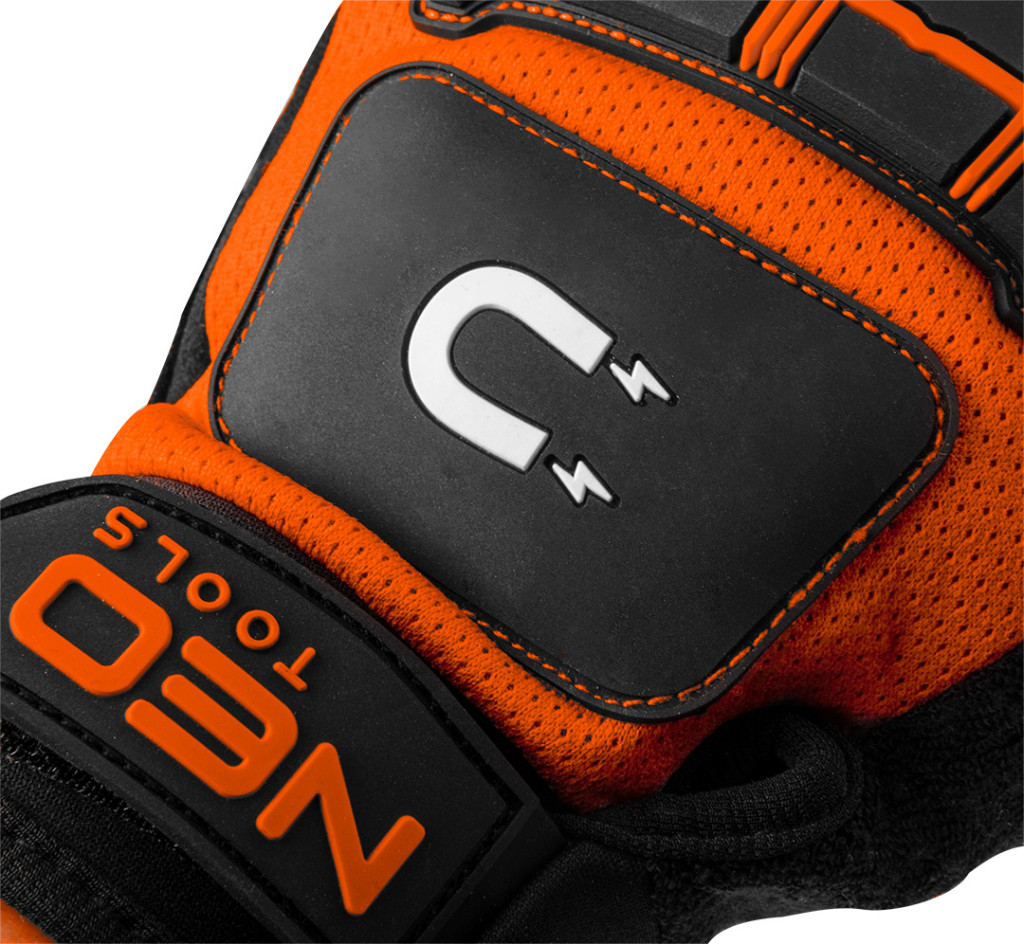 A NEO mágneses munkakesztyű egy kiváló minőségű eszköz, amelyet kifejezetten a barkácsolók és műhelymunkások számára terveztek. Itt vannak a kulcsfontosságú jellemzők:, Mágnes a Hátoldalon: A kesztyű hátoldalán található mágnes segítségével egyszerűen tárolhatók és hozzáférhetők a barkácsoláshoz szükséges csavarok, anyák és más kis alkatrészek., Védelem Ütések Ellen: Az ujjakat és a csuklót gumibevonat védi, ami csökkenti az ütéseket és megakadályozza a kopást, így a kesztyű hosszabb ideig kényelmes és strapabíró marad., Tépőzáras Csukló: A csuklónál található tépőzárnak köszönhetően könnyen beállítható a kesztyű kerülete, így biztosítva a megfelelő illeszkedést és kényelmet., Megfelel az EN 388 Szabványnak: Az EN 388 szabványnak való megfelelés azt jelzi, hogy a kesztyű megfelel a kopásállóság, vágásállóság, szakításállóság és szúrásállóság szempontjából előírt követelményeknek., Méret: A kesztyű 10" méretben kapható., Ez a munkakesztyű praktikus és tartós választás lehet mindazoknak, akiknek fontos a kényelem és a biztonság a műhelymunkák során.