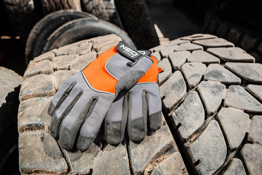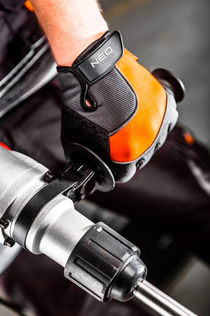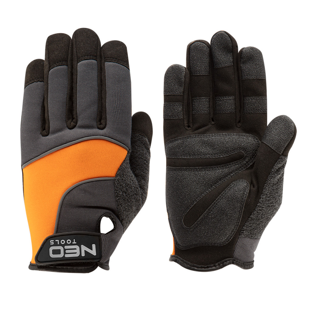NEO műbőr védőkesztyű PVC elemekkel.. A munkavégzés során védelmet biztosít a kéznek szennyeződések, karcolások, zúzódások és káros hatások ellen. Kiváló minőségű műbőrből készül. Igen magas a tépésállósága. Használata nagyon kényelmes, ugyanakkor megakadályozza a szerszámok kicsúszását a kézből. A CE jelölés a biztonság garanciája, bizonyítja, hogy a termék teljesít minden európai uniós követelményt. A NEO márka a professzionális igényeket is kielégíti.
