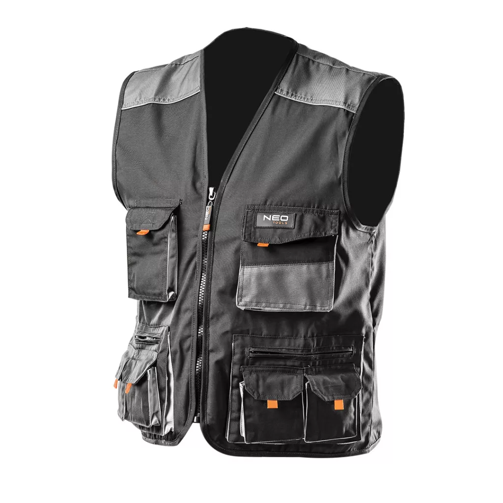 A NEO munkamellény nagyon praktikus megoldás mindenféle munkához, úgy a szakemberek, mint a barkácsolók részére. Erős, mechanikai behatásokra igen jó ellenálló-képességgel jellemezhető, Oxford szövetből készül. A tripla varrások növelik tartósságát, a fényvisszaverő elemek biztosítják viselője láthatóságát. A zsebek nagy terhelést is kibírnak, elférnek benne a munka közben szükséges szerszámok. Jelentős előnye az okostelefon zseb, így a telefon mindig kézközelben lehet. A termék EN ISO 13688:2013 szabvány szerinti kivitelezése és az európai tanúsítványa minőségének garanciája. A NEO márka a professzionális igényeket is kielégíti.