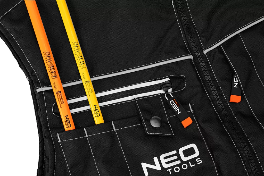 A NEO munkamellény praktikus megoldás mindenféle munkához, úgy a szakemberek, mint a barkácsolók részére. Strapabíró, könnyű Oxford szövetből készült ami bélelt ezáltal jól melegen tartja viselőjét. Fényvisszaverő elemek biztosítják láthatóságát. A zsebek nagy terhelést is kibírnak, elférnek benne a munka közben szükséges szerszámok. A belső zsebnek és a többfunkciós akasztónak köszönhetően a szükséges dolgokat viselője mindig magánál tarthatja. A CE tanúsítvány igazolja az európai biztonsági normáknak való megfelelést. A NEO márka a professzionális igényeket is kielégíti.