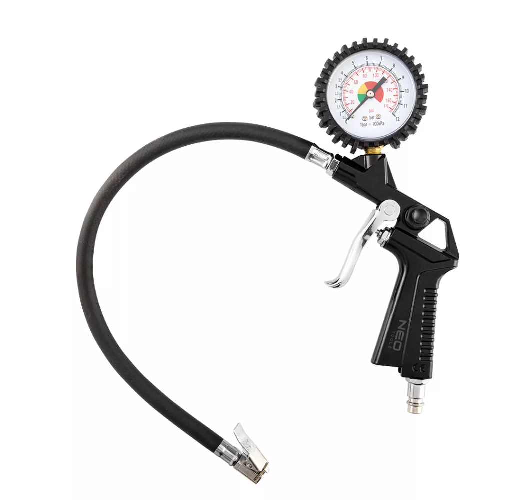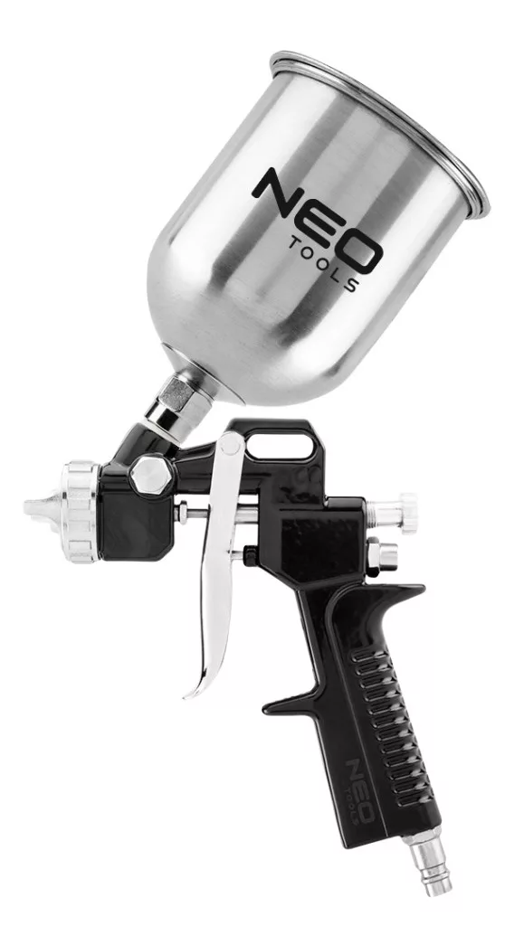 NEO pneumatikus festékszóró, kerékfúvó készlet. 5 elemből áll. Komplett készlet műhelyek számára, széleskörű alkalmazási lehetőségekkel, pl. festéshez, kerékpumpáláshoz, felülettisztításhoz (lefúvatáshoz). A készlet elemei: szórópisztoly felső tartállyal, alvázvédő pisztoly, lefúvató pisztoly, manométeres kerékfúvató pisztoly, valamint spirál tömlő. A Neo a professzionális igényeket is kielégíti.
