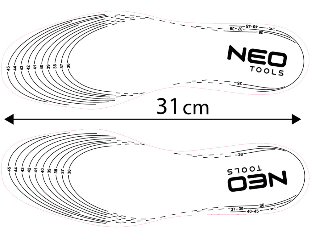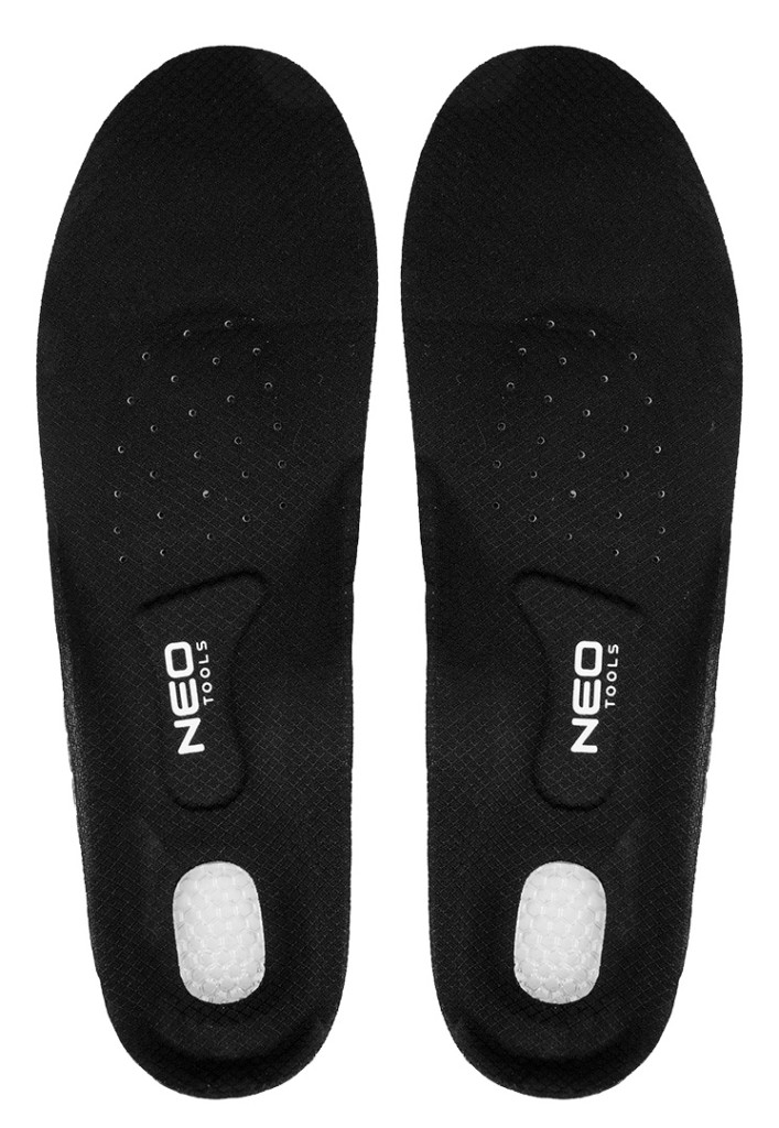 NEO 82-333 TALPBETÉT, ZSELÉS SAROKVÉDŐ BETÉT, TALPBOLTOZAT MEREVÍTÉS, NEDVESSÉGELVEZETŐ PERFORÁCIÓVAL, UNI. MÉRET, 41-47. Könnyen vághatóak 41-47-es méretre, és kiváló minőségű EVA habból készülnek. A sarokrészen ütéscsillapító gélbetéttel, a lábközépcsont területén pedig latexbetéttel rendelkezik a jobb kényelem érdekében. A NEO TOOLS cipő talpbetét profilozott, hogy alátámassza a láb boltozatát, és csökkentse a lábfej kopásának és tyúkszemek kialakulásának kockázatát. Lélegző, tartós és kényelmes termék, amely minden körülmények között megfelelő alátámasztást biztosít lábának.