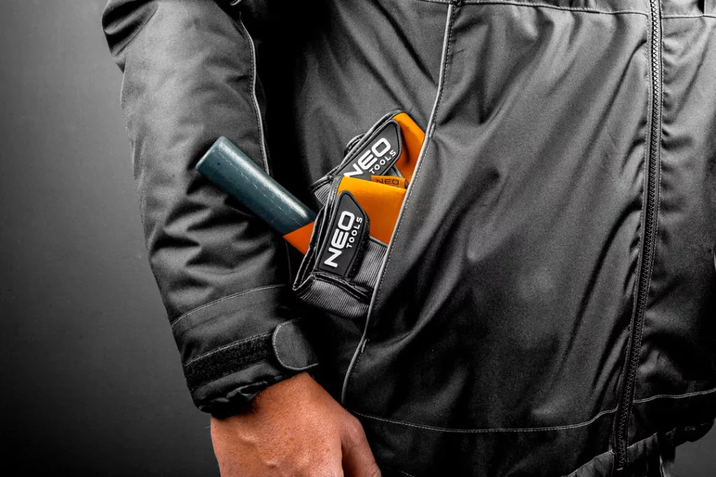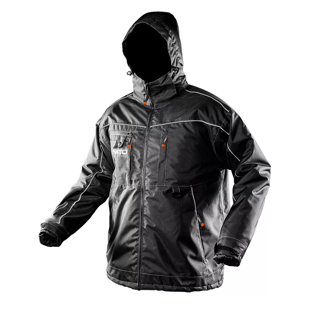 NEO téli munkakabát vízlepergető és szélálló ezáltal nagyon meleg. Az alkalmazott anyagoknak köszönhetően strapabíró és komfortos jól alkalmazkodik viselője mozgásához. Levehető-szabályozható csuklyával, magas a nyakat védő állógallérral rendelkezik. Az ujjak vége rugalmasan könnyedén szabályozható, szél és az eső ellen védő belső mandzsetta kialakítással. A dzseki alsó szegélyén integrált, szabályozható rugalmas derékkialakítás található ami segíti a meleg megőrzését ezáltal maximálisan komfortossá téve a kabát viseletét. A kabáton sok hasznos zseb van, a korábbiakhoz eltérően nagyobb zsebbel az okostelefonnak. A belső zsebnek és a többfunkciós akasztónak köszönhetően, a szükséges eszközöket-szerszámokat viselője mindig magánál tarthatja. A fényvisszaverő elemek biztosítják viselője láthatóságát. A termék EN ISO 13688:2013 szabvány szerinti kivitelezése és az európai CE tanúsítványa minőségének garanciája. A NEO márka a professzionális igényeket is kielégíti.
