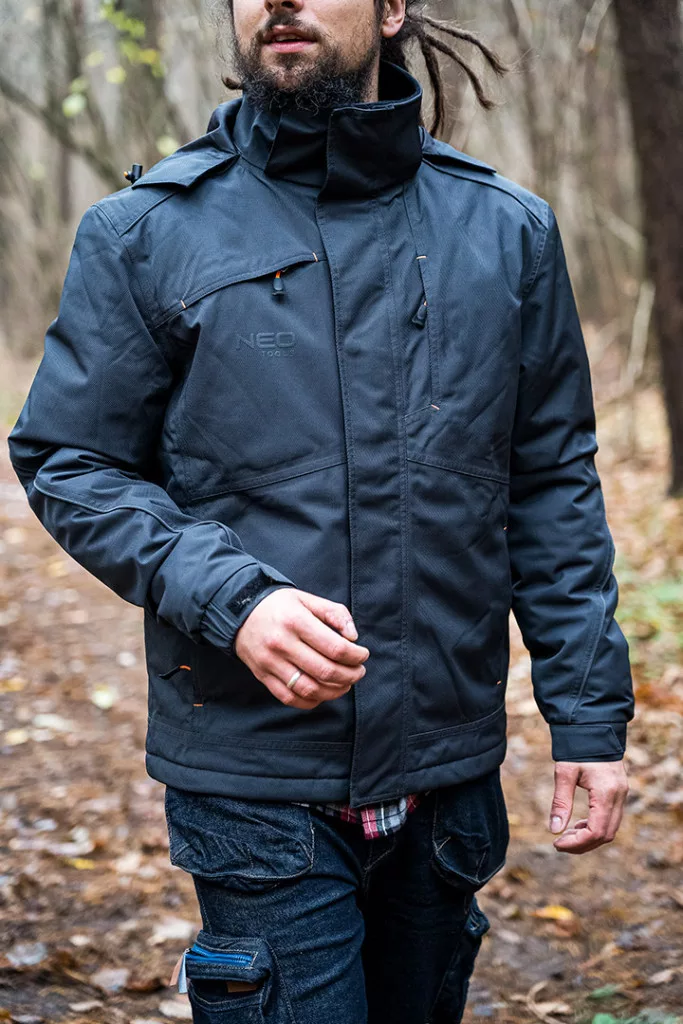 A NEO OUTDOOR kültéri télikabát tartós dobby szövetből készül. Ez a kabát zord időjárási körülmények között dolgozók számára ajánlott. A kabátot úgy tervezték, hogy ne csak tartósságot, hanem védelmet is nyújtson a vízzel szemben, és garantált hőkomfortot biztosítson, így kiváló támogatást nyújt a téli időszakban végzett munka során. A jellegzetes textúrájú, tartós dobby anyag nem csak tartósságot, hanem esztétikus megjelenést is garantál. Ezenkívül a TPU (termoplasztikus uretán) membrán bevonat 5000 mm-es vízállóságot biztosít a kabátnak, ami fontos, ha nedves vagy esős körülmények között dolgozik. A magas kapucni könnyen betűrhető az állógallérba, ami praktikus megoldás, ha az időjárási körülmények megváltoznak. Az állítható ujjszegély és a mandzsettánál lévő gumirozás biztosítja a kényelmes illeszkedést és a szél elleni védelmet. A fényvisszaverő szalag amely az ujjakon is végigfut, növeli a viselője láthatóságát, ami különösen fontos a korlátozott látási viszonyok között.A termék CE tanúsítvánnyal rendelkezik. S-XXXL méretben kapható.