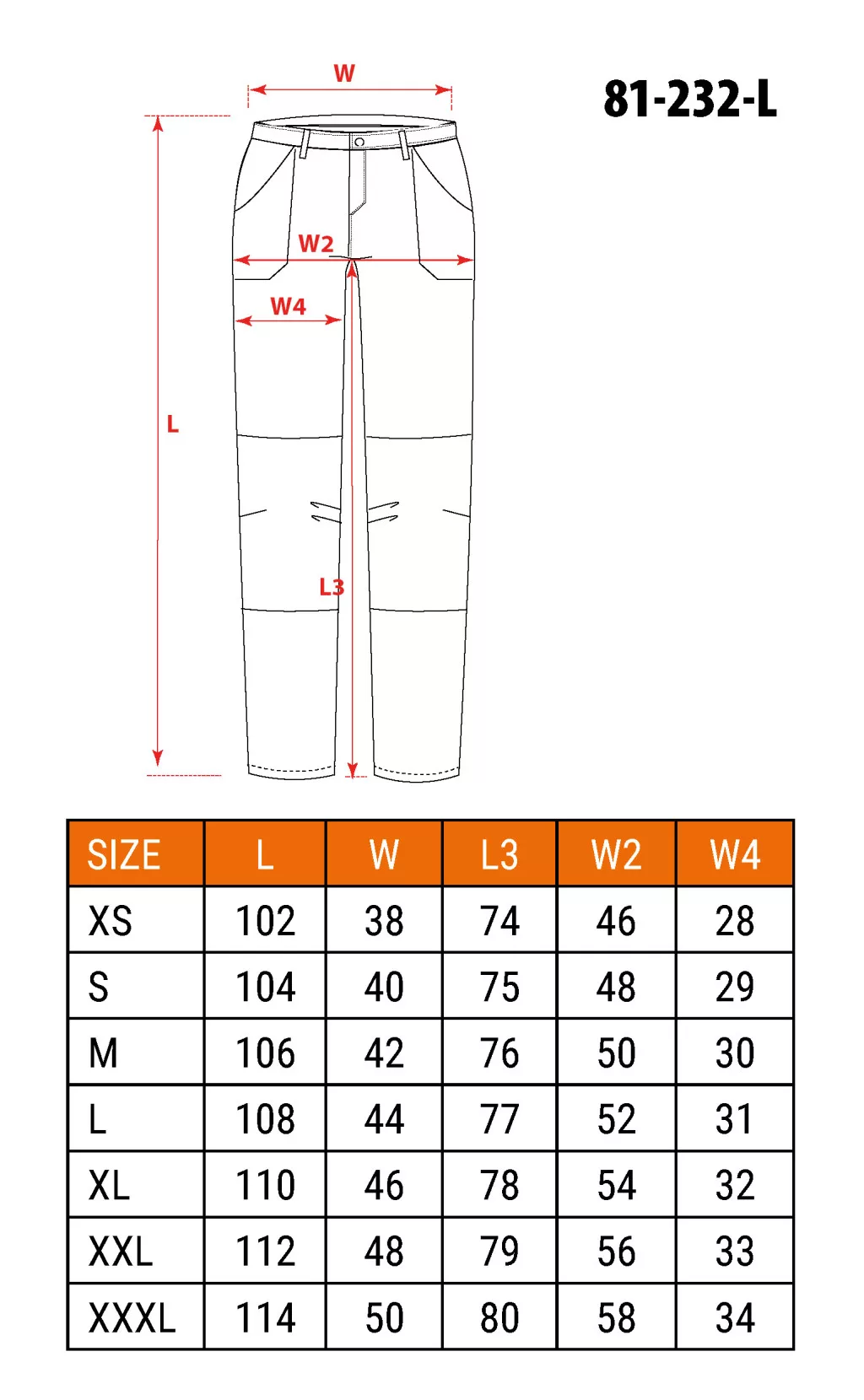 A NEO Camo URBAN munkanadrág 60% pamut, 37% poliészter és 3% elasztán anyagösszetételű, tartós twill szövetből készült, ami 255 g/m2 súlyú. A nadrágot egyedi, szürke árnyalatú minta jellemzi. Többfunkciós zsebekkel köztük egy személyazonosító zsebbel van ellátva. Megerősített térdekkel és praktikus zsebekkel a térdvédők számára. A háromszoros varrás hozzájárul a ruhadarab kiváló megjelenéséhez, a rugalmas derékpánt pedig jobb illeszkedést biztosít. A nadrág térdei is profilozottak. A NEO márkájú nadrágokat munkához és hétköznapi viselethez egyaránt ajánljuk.