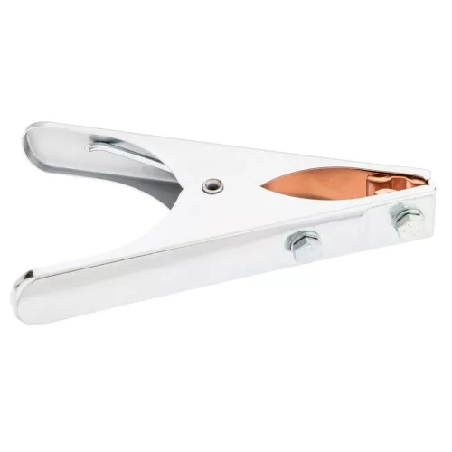 Testcsipesz, szorítópofás (cikkszám: 56-881) az erős rugó révén a hegesztő testkábel gyorsan és stabilan rögzíthető. A pofák rézbetétjei javítják az áram vezetését a hegesztés alatt.