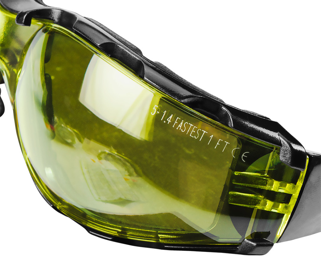 Neo Tools Védőszemüveg, polifoam porvédő peremmel, sárga lencsékkel, F osztályú ellenállósági osztályú