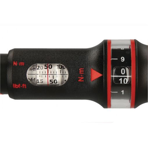 Erős, 30 fogú racsnis mechanizmus, irányváltás a bordázott gombfej átfordításával történik. Nagy méretu leolvasóablak teszi lehetővé a könnyű és pontos beállítást. A kívánt nyomatékérték beállítása után a kulcs nyomógomb segítségével zárható. A nyomatékhatár elérésekor a kulcs leold, érezheto és hallható jelet adva.