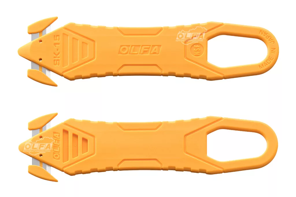 OLFA SK-15/DB - Biztonsági kés. Rejtett rozsdamentes pengéjű biztonsági kés. A pengecsatorna kialakítása biztonságos munkavégzést garantál. Ugyanakkor megkönnyíti a kés mosását. NSF élelmiszer biztonsági tanúsítvánnyal rendelkezik. A ragasztott dobozok nyitására a kés elején kis műanyag fül található. Karcsú felépítése miatt, könnyen kezelhető és akár zsebben is tárolható. A rejtette pengék nem cserélhetők! Az acetonálló markolat végén található nagyméretű nyílásba, biztonsági szerszám-heveder csatolható.