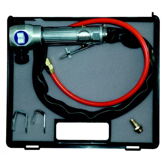 Speciális pneumatikus szerszám szélvédők kivágásához és tömítőanyag eltávolításához. Kivágókések választéka a legtöbb autótípushoz. Tartozék 2 univerzális vágókés 10700815 (24 mm) és 10700818 (36 mm). Vágási sebesség: 0 - 22.000/perc. A szerszám hosszúsága 200 mm, súlya 1,1 kg, zajszintje 87,1 dB. A készletet praktikus műanyag dobozban szállítjuk. ,